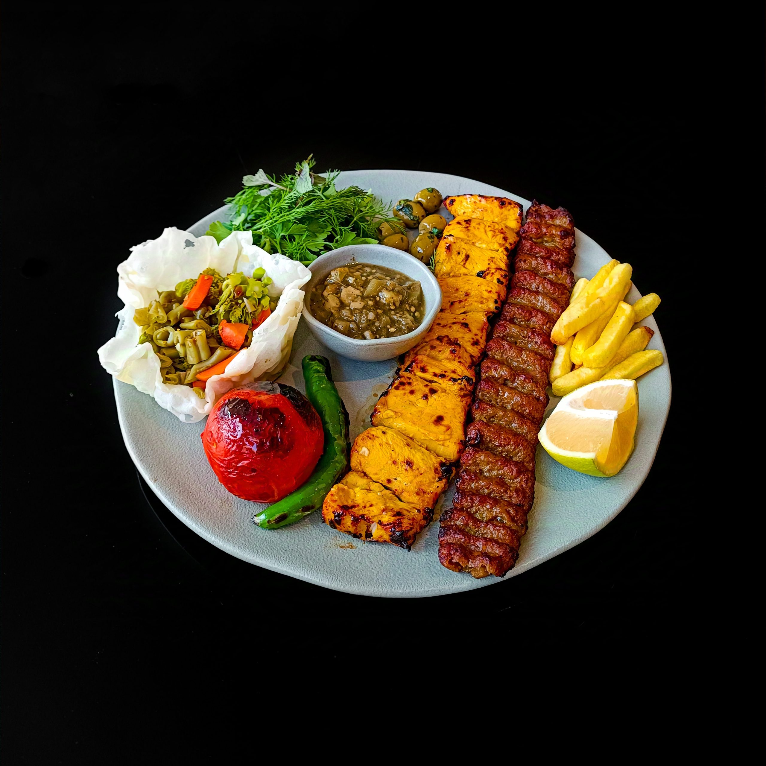 240 گرم گوشت چرخ شده مخلوط به همراه ساید سبزیجات (2 سیخ)