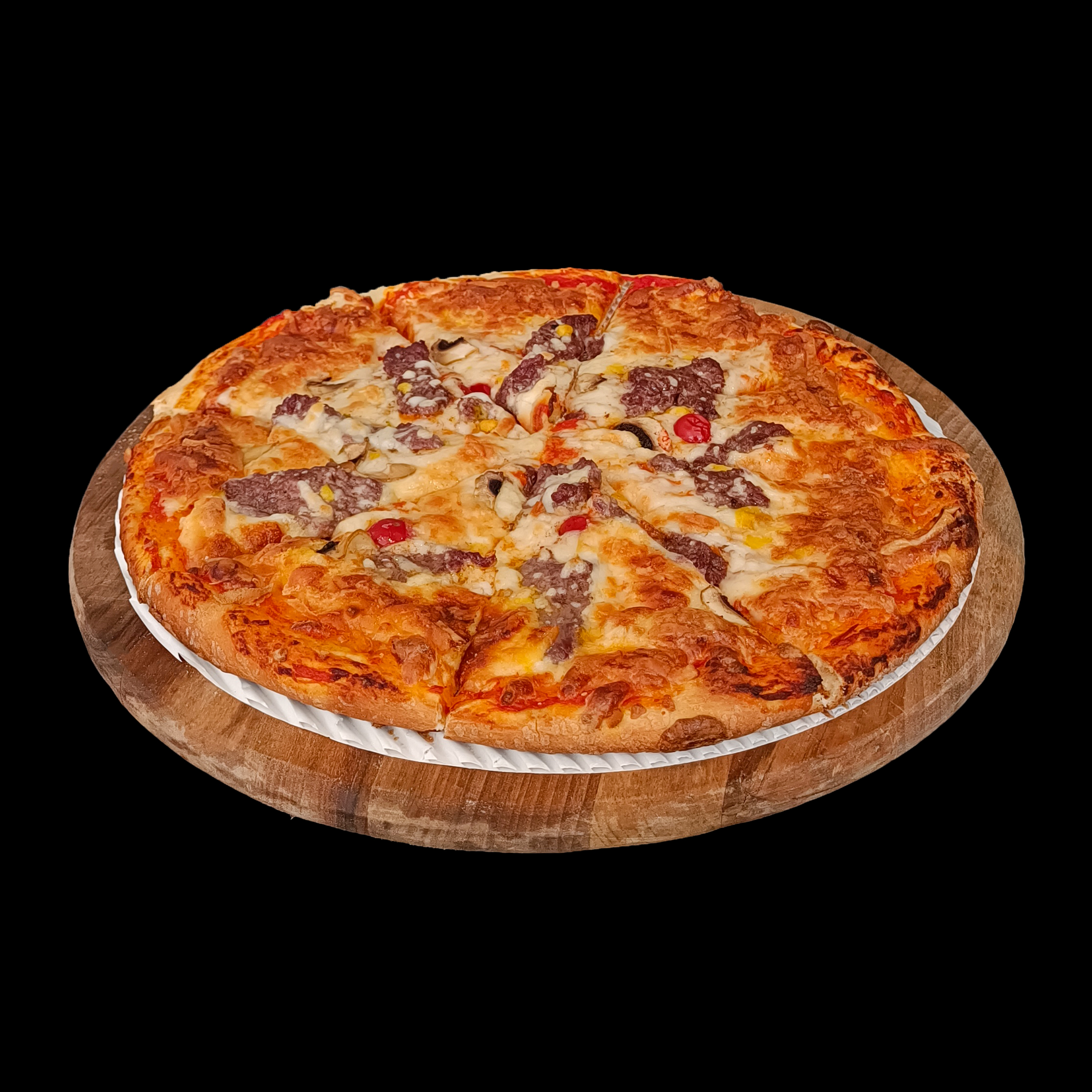 پپرونی، مرغ گریل، استیک، بیکن، سس مارینارا، پنیر دانمارکی