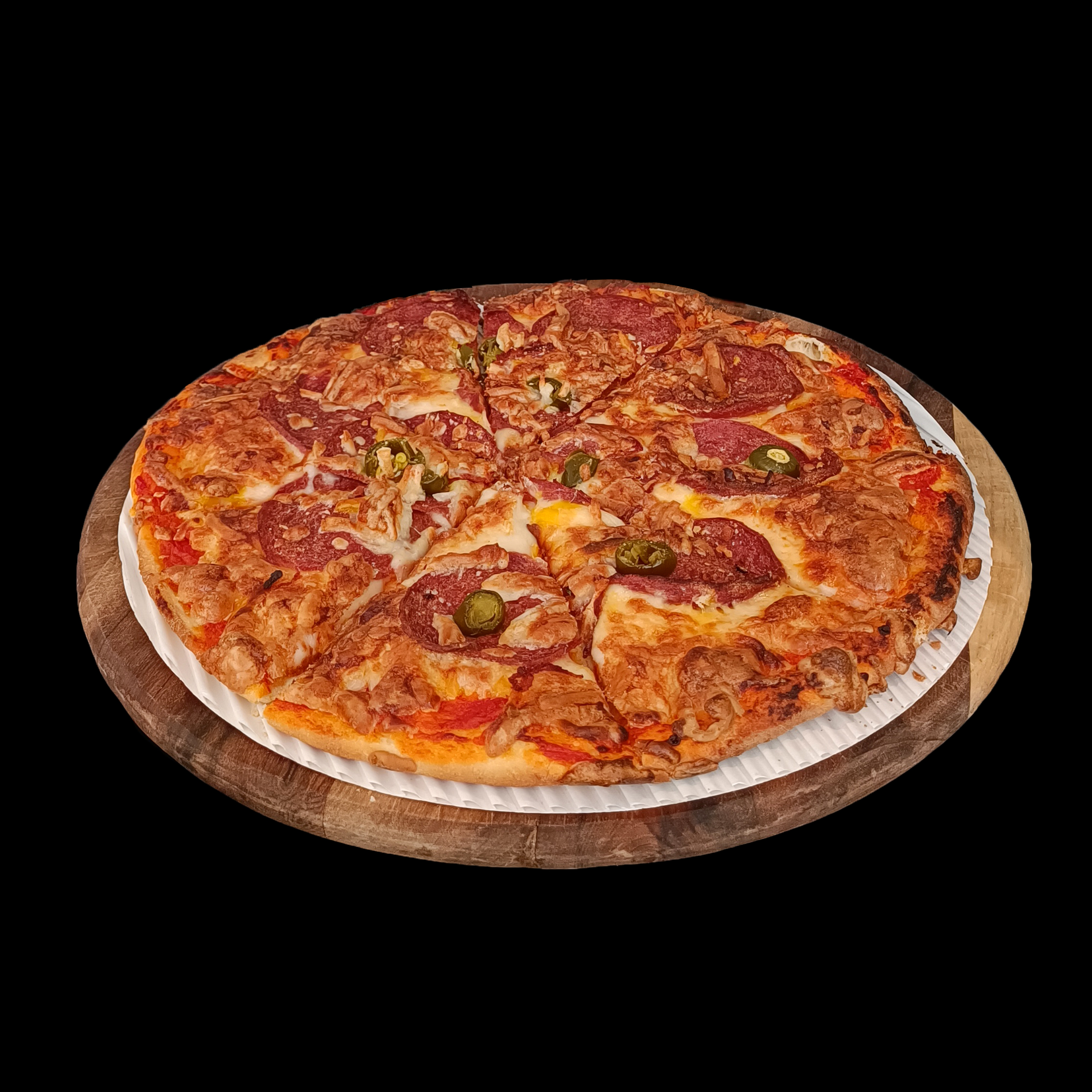 پپرونی، فلفل هالوپینو، سس مارینارا، پنیر دانمارکی